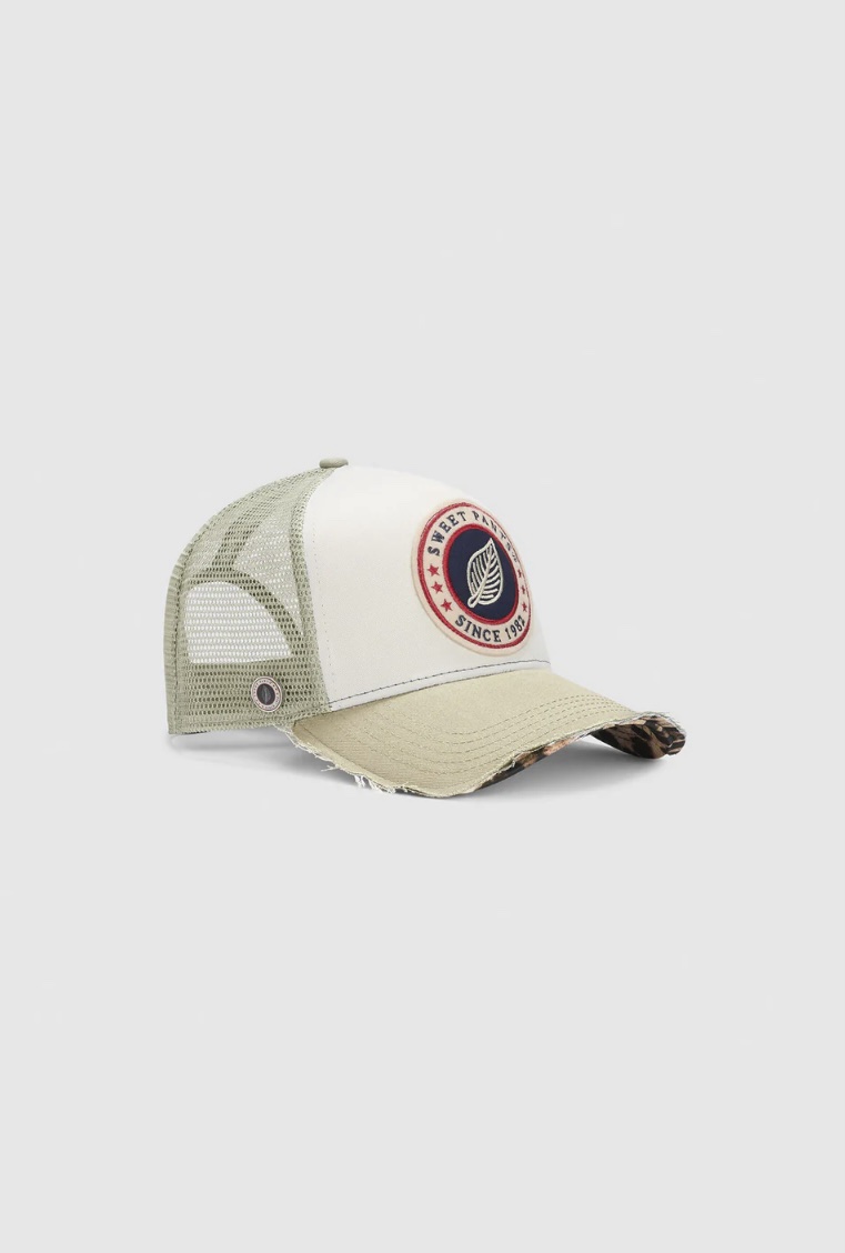 Sur le devant, le patch brodé Sweet Pants “Since 1982” rappelle l’héritage et l’ADN de la marque, avec un esprit authentique et graphique. La visière beige légèrement patinée, aux finitions contrastées, apporte une touche casual et un effet déjà porté très tendance.